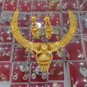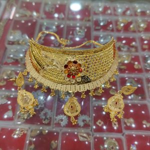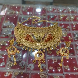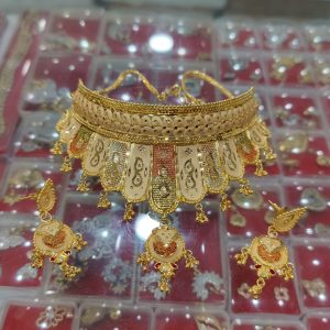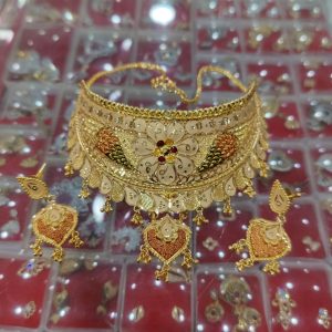 Description: This TJP Classy Gold Plated Choker Necklace Set For Women. Women love jewellery; specially artificial jewellery adore a women. They wear it on different occasion. They have special importance on ring ceremony, wedding and festive time. They can also wear it on regular basis . Make your moment memorable with this range. This jewellery features a unique one of a kind traditional emblish with antic finish.