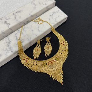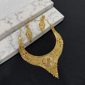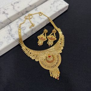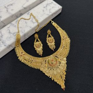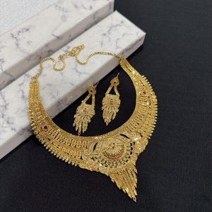 The Jewellery Place designer Gold plated necklace set for women is made of alloy. Women love jewellery; specially traditional jewellery adore a women. They wear it on different occasion. They have special importance on ring ceremony, wedding and festive time. They can also wear it on regular basics. Make your moment memorable with this range. This jewel set features a unique one of a kind traditional embellish with antic finish.