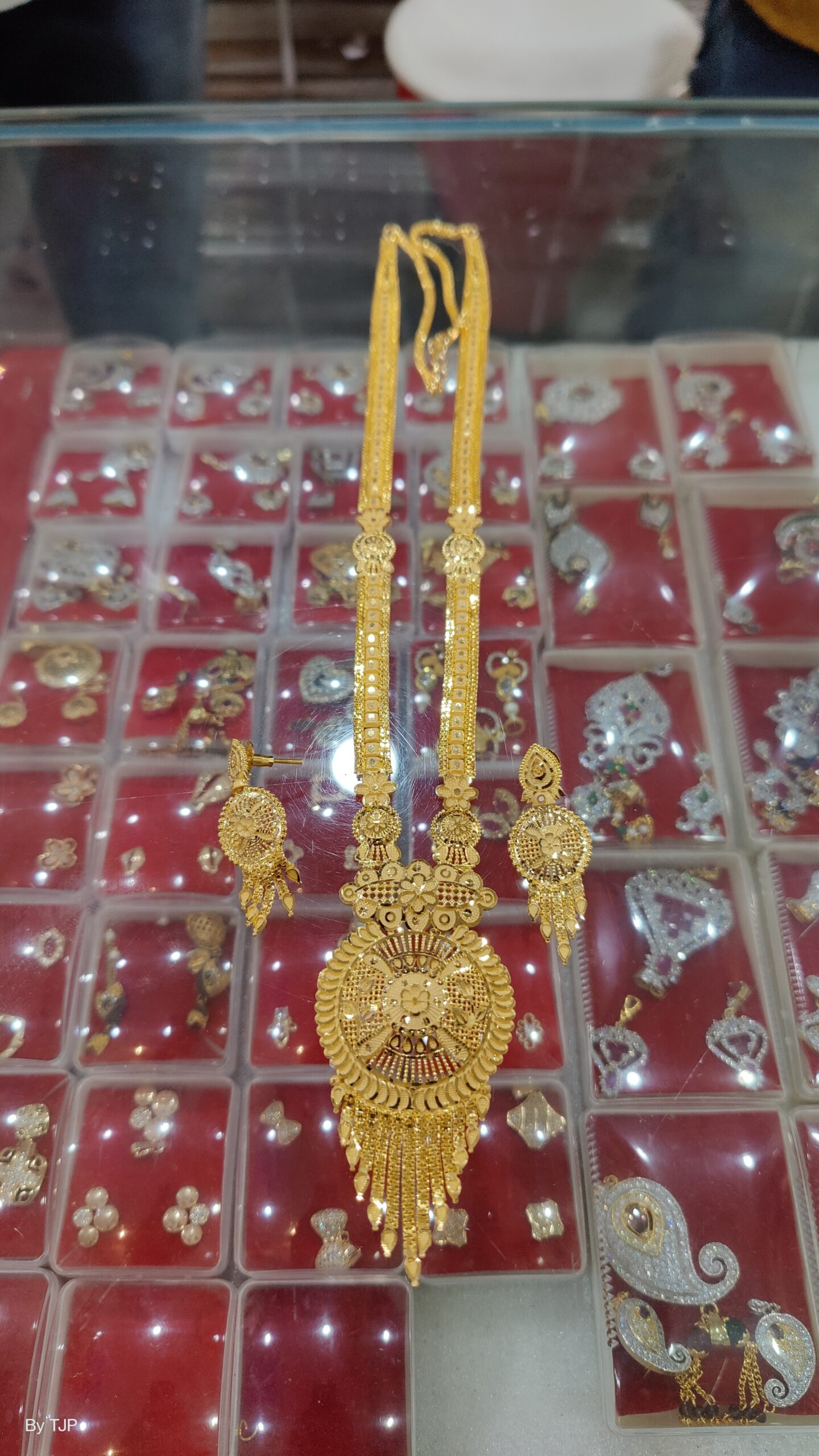 The Jewellery Place designer Gold plated necklace set for women is made of alloy. Women love jewellery; specially traditional jewellery adore a women. They wear it on different occasion. They have special importance on ring ceremony, wedding and festive time. They can also wear it on regular basics. Make your moment memorable with this range. This jewel set features a unique one of a kind traditional embellish with antic finish.
